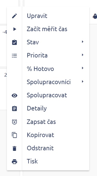 Kdykoliv upravujete úkol, využijte rychlých možností v kontext menu, které se nabídnou po kliknutí pravým tlačítkem myši na řádce konkrétního úkolu. Vybírejte, přesouvejte nebo upravujte dva nebo více úkolů najednou - kombinací kláves SHIFT/CTRL + levým tlačítkem myši označíte všechny úkoly k úpravě. Pak použijte funkci drag and drop nebo jakoukoliv nabídku z kontext menu.