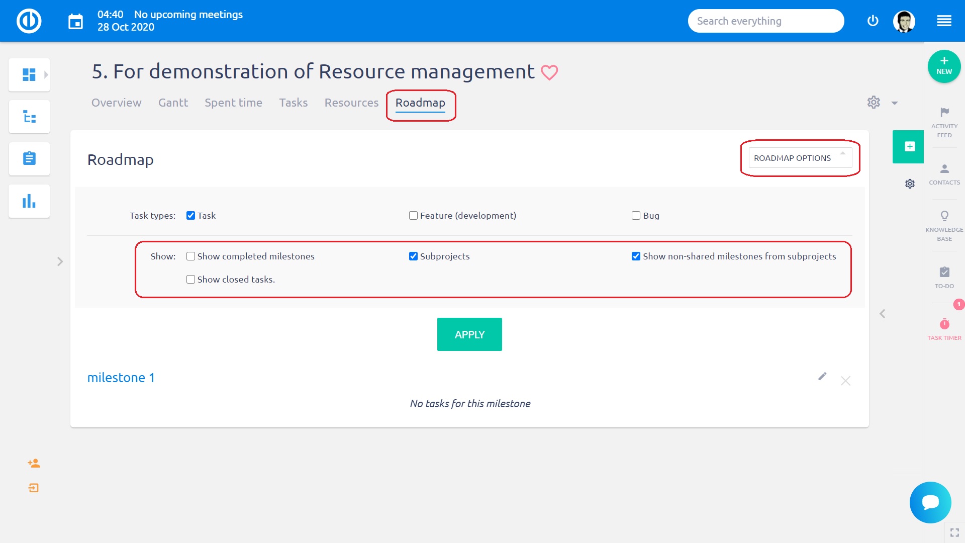 Milníky jsou určené body, kterých je nutno dosáhnout v průběhu projektu. Každý milník je spojen s konkrétním projektem, proto je možné je přidávat vždy v nastavení konkrétního projektu - vše detailně vidíte níže. Milníky projektu lze spravovat na kartě Milníky v hlavní nabídce projektu.