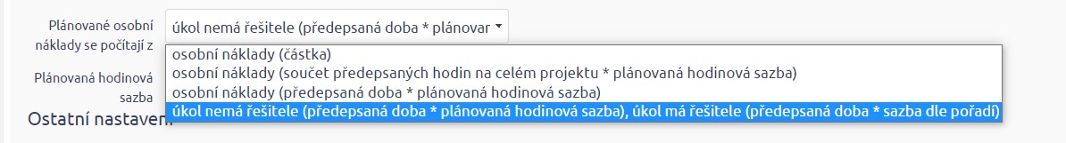 3) Plánované osobní náklady - Plánované osobní náklady lze počítat různými způsoby, podle nastavení.