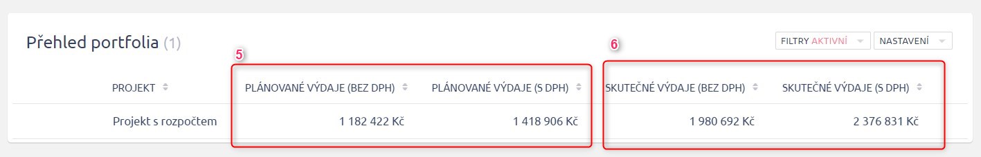 Začneme s přehledem v rozpočtu projektu.